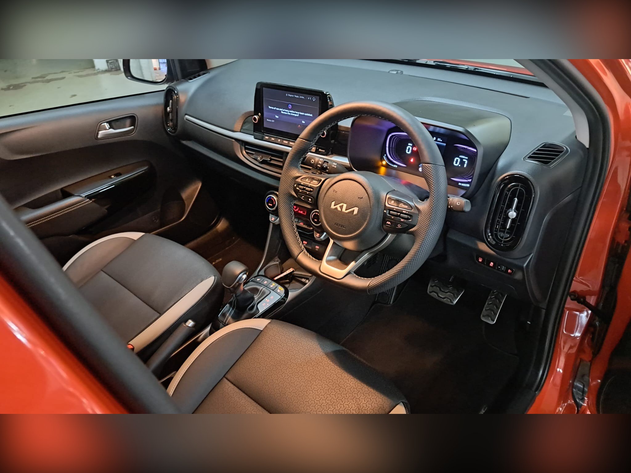 Introducing the 2025 Kia Picanto 1.0 GT-Line S Hatchback, a sleek and efficient vehicle perfect for city driving with only 1000 miles on the clock. This stylish hatchback is powered by a petrol engine and features a smooth AMT transmission, making it a joy to drive. With 5 doors and 5 seats, there's plenty of room for passengers and storage, and it's ULEZ compliant, offering peace of mind for urban driving. The interior includes modern conveniences such as a 8in touchscreen navigation system, Apple CarPlay and Android Auto compatibility, as well as Bluetooth connection for seamless connectivity. Other features include a 4-speaker audio system and a 12V power socket in the front, making every journey a pleasure. Whether navigating the city streets or hitting the open road, the Kia Picanto 1.0 GT-Line S is the ultimate combination of style, performance, and practicality. -