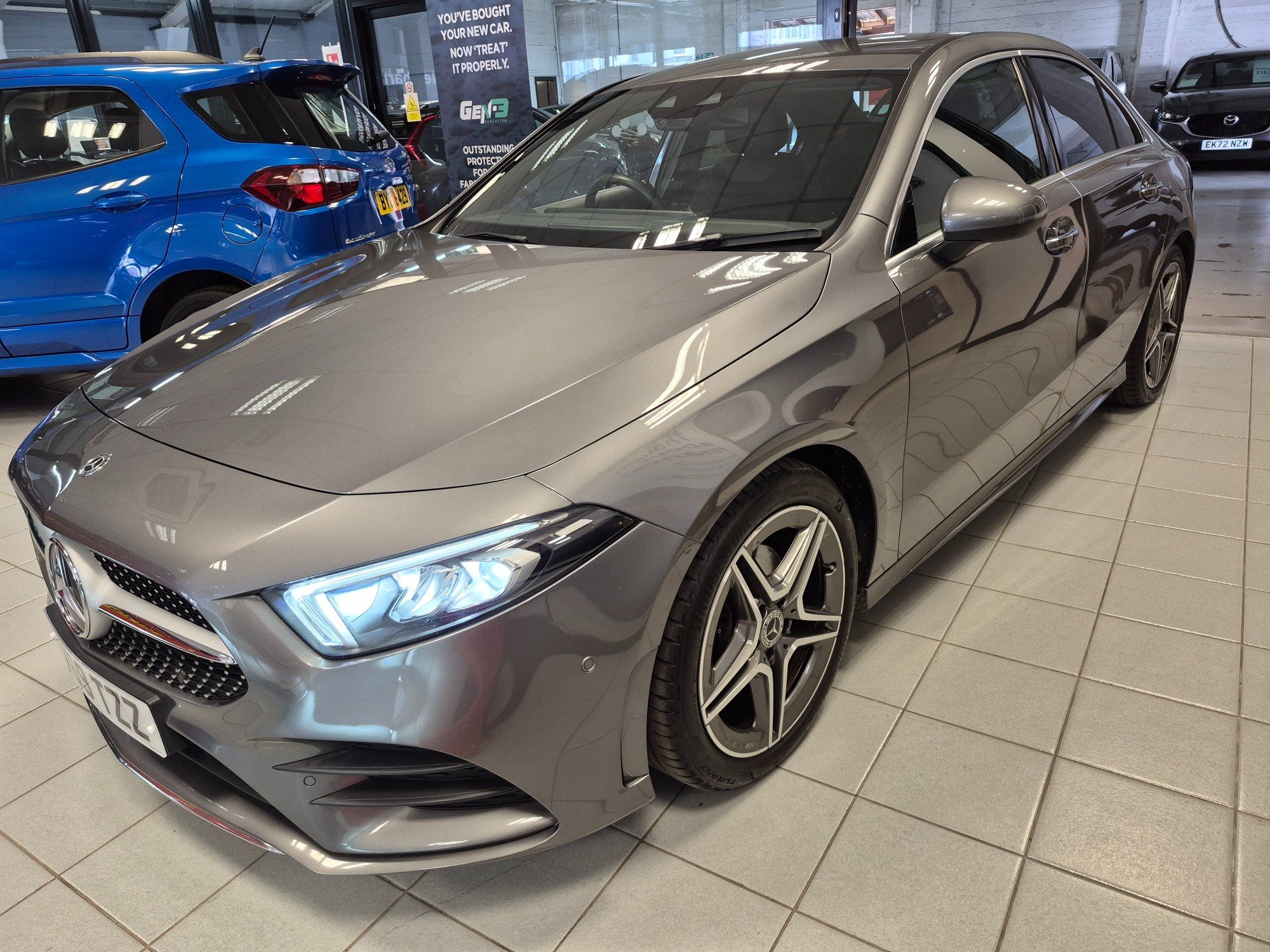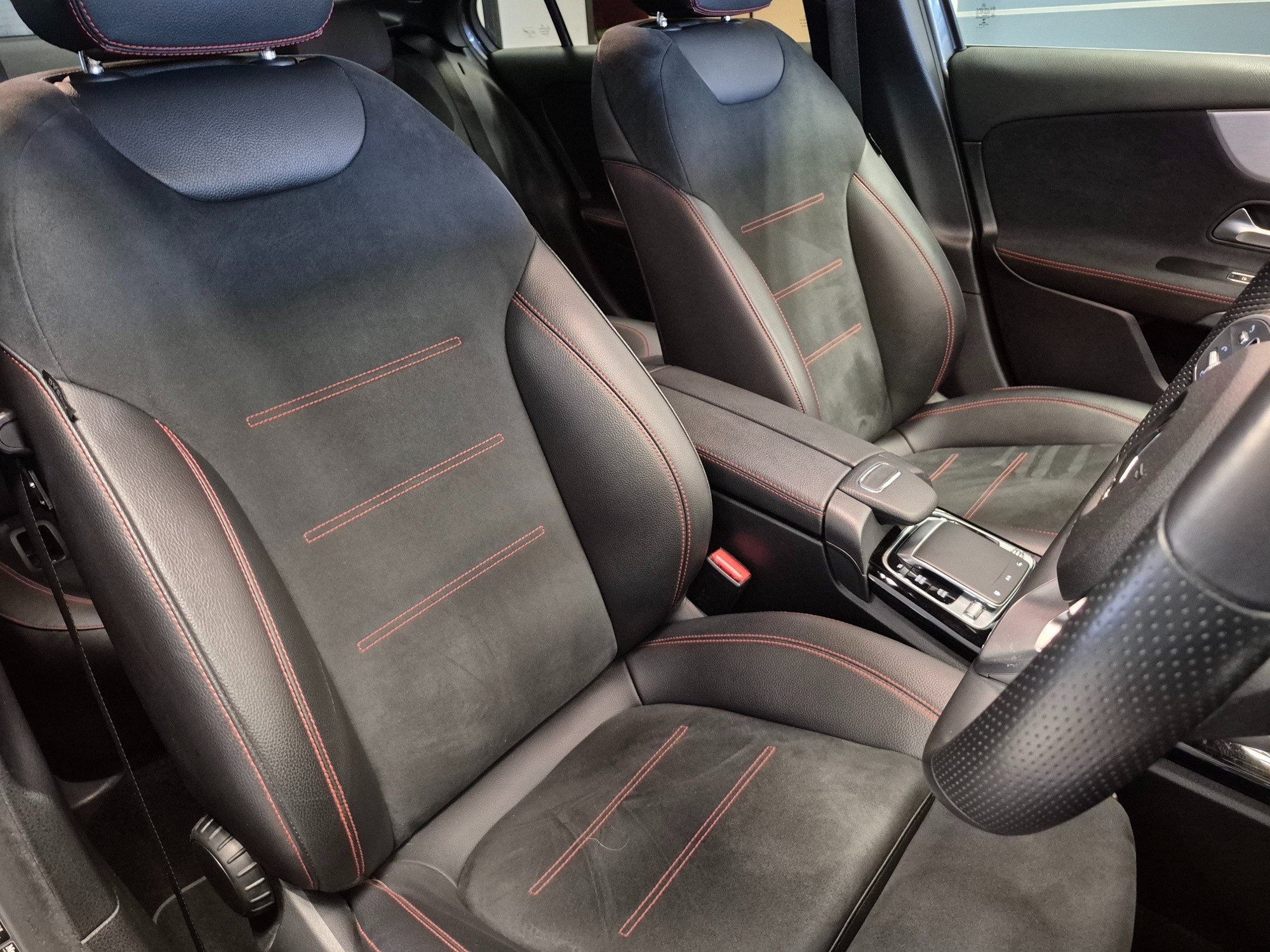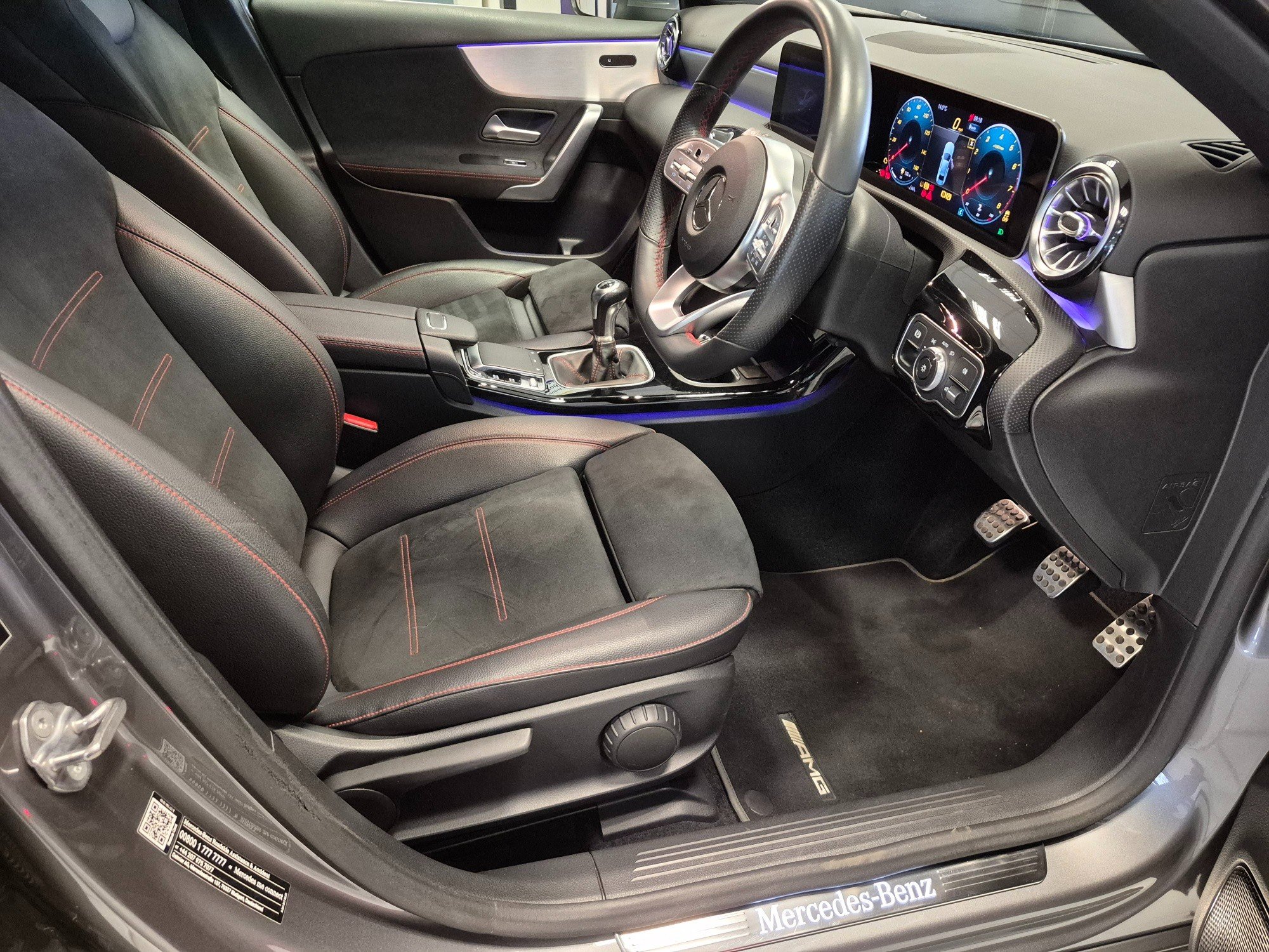 This 2019 Mercedes-Benz A Class 1.3 A200 AMG Line (Premium) Saloon with a manual petrol engine is a stylish and sophisticated vehicle with just 53462 miles on the clock. With 5 seats, 4 doors, and ULEZ compliance, this car is perfect for city driving. The MOT is valid until 03/09/2026, providing peace of mind for the future. The car boasts 18in Alloy Wheels, AMG Bodystyling, Beltline Strips in Chrome, and Body-Coloured Side Skirts, giving it a sporty and modern look. The Brake Calipers feature the iconic Mercedes-Benz lettering on the front, adding to its premium aesthetic. With its sleek design, efficient petrol engine, and impressive features, this Mercedes-Benz A Class is the perfect combination of luxury and practicality. -