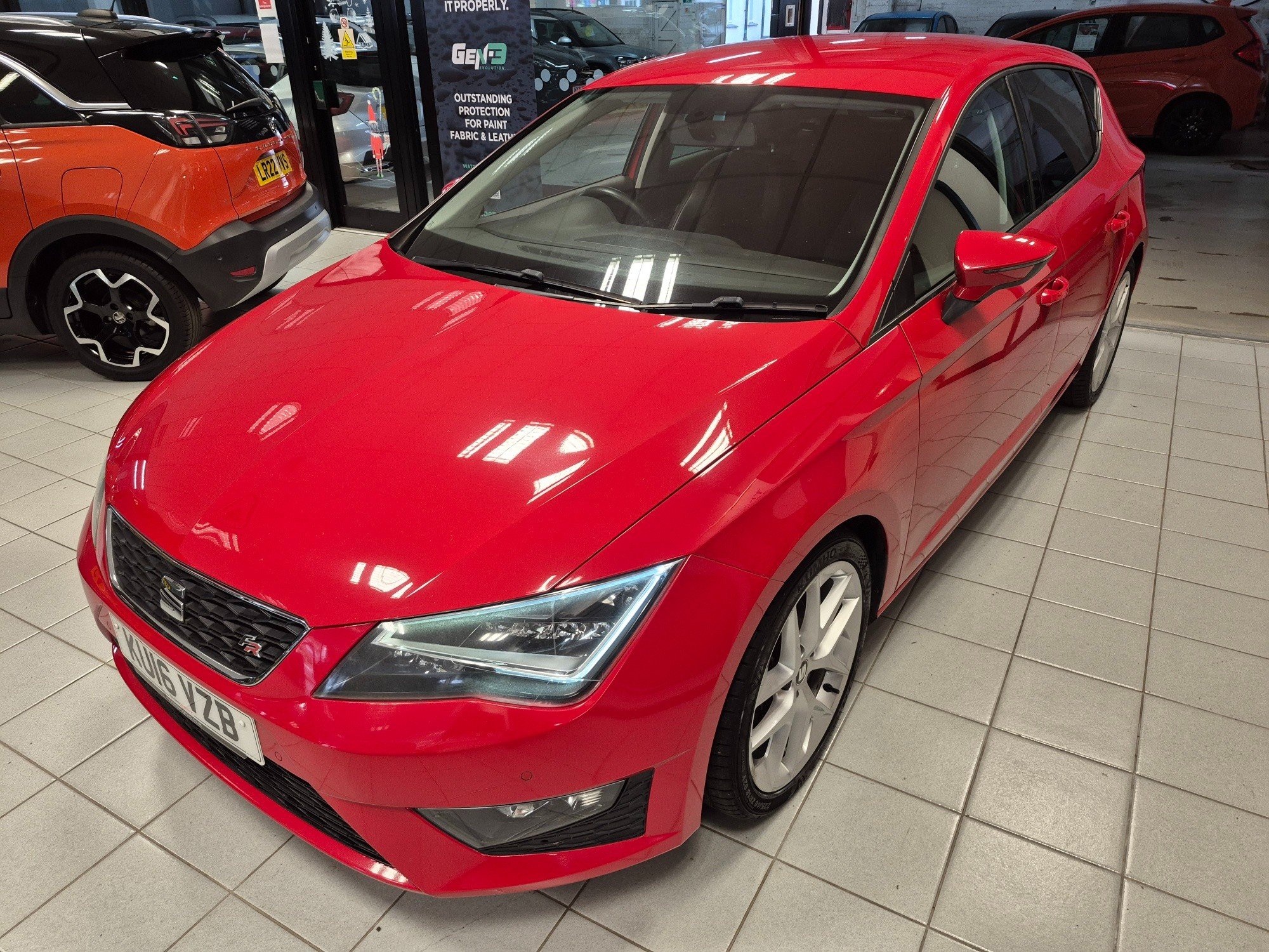 Here we have a 2016 SEAT Leon 1.4 EcoTSI FR Hatchback with 62547 miles on the clock, powered by a petrol engine and a manual transmission, making it Euro 6 (s/s) compliant with 150 ps. This 5-door, 5-seater vehicle is ULEZ compliant and has a valid MOT until 03/03/2026. It comes with 1 previous registered keeper and includes features such as a 12 Volt Power Supply in Centre Console, 3.5in Drivers Display, Anti-Theft Roof Antenna, Bluetooth Phone Connection, and Media System Colour. This well-maintained hatchback is the perfect blend of performance and practicality, making it an ideal choice for anyone in need of a reliable and stylish vehicle. -