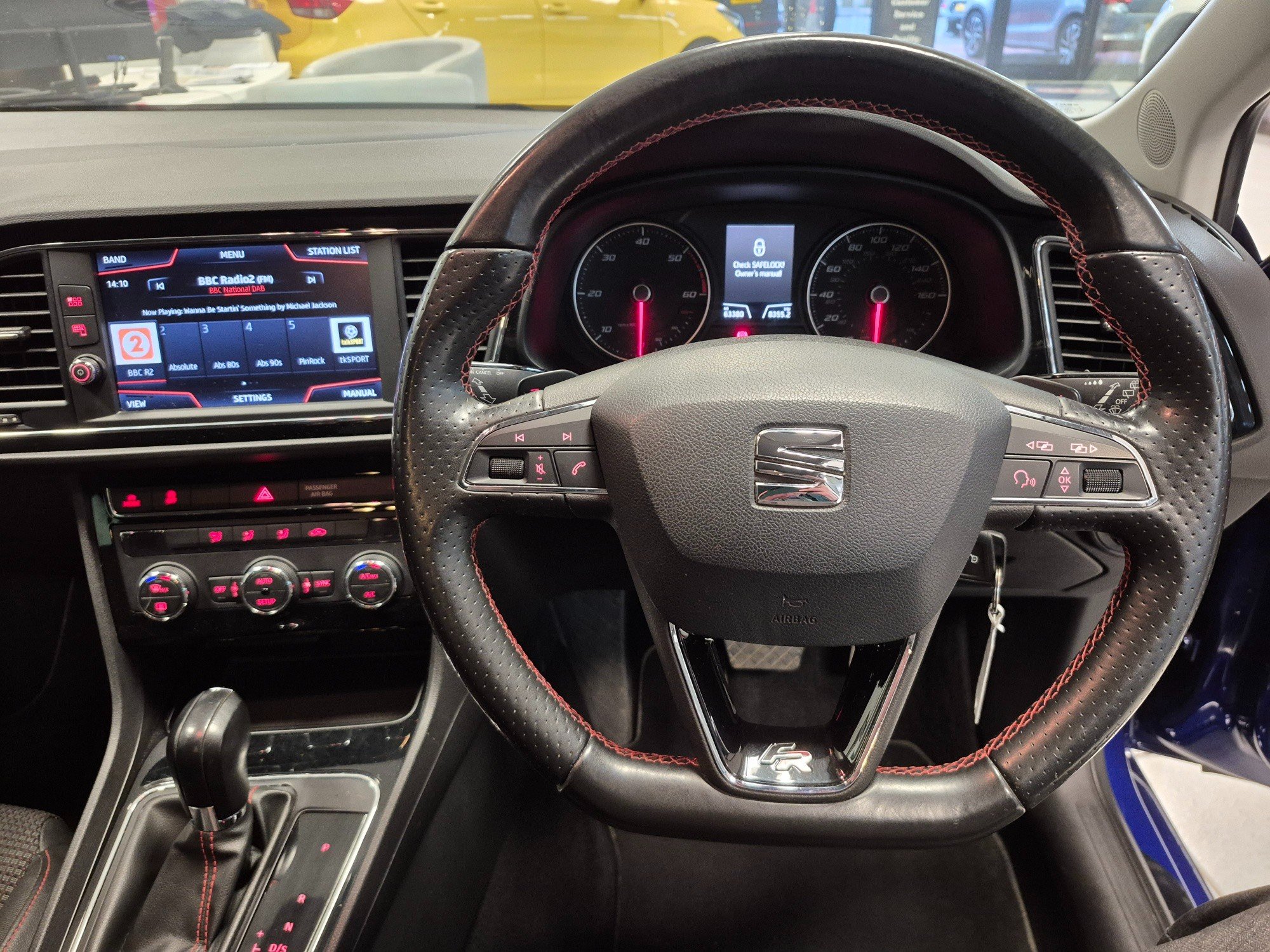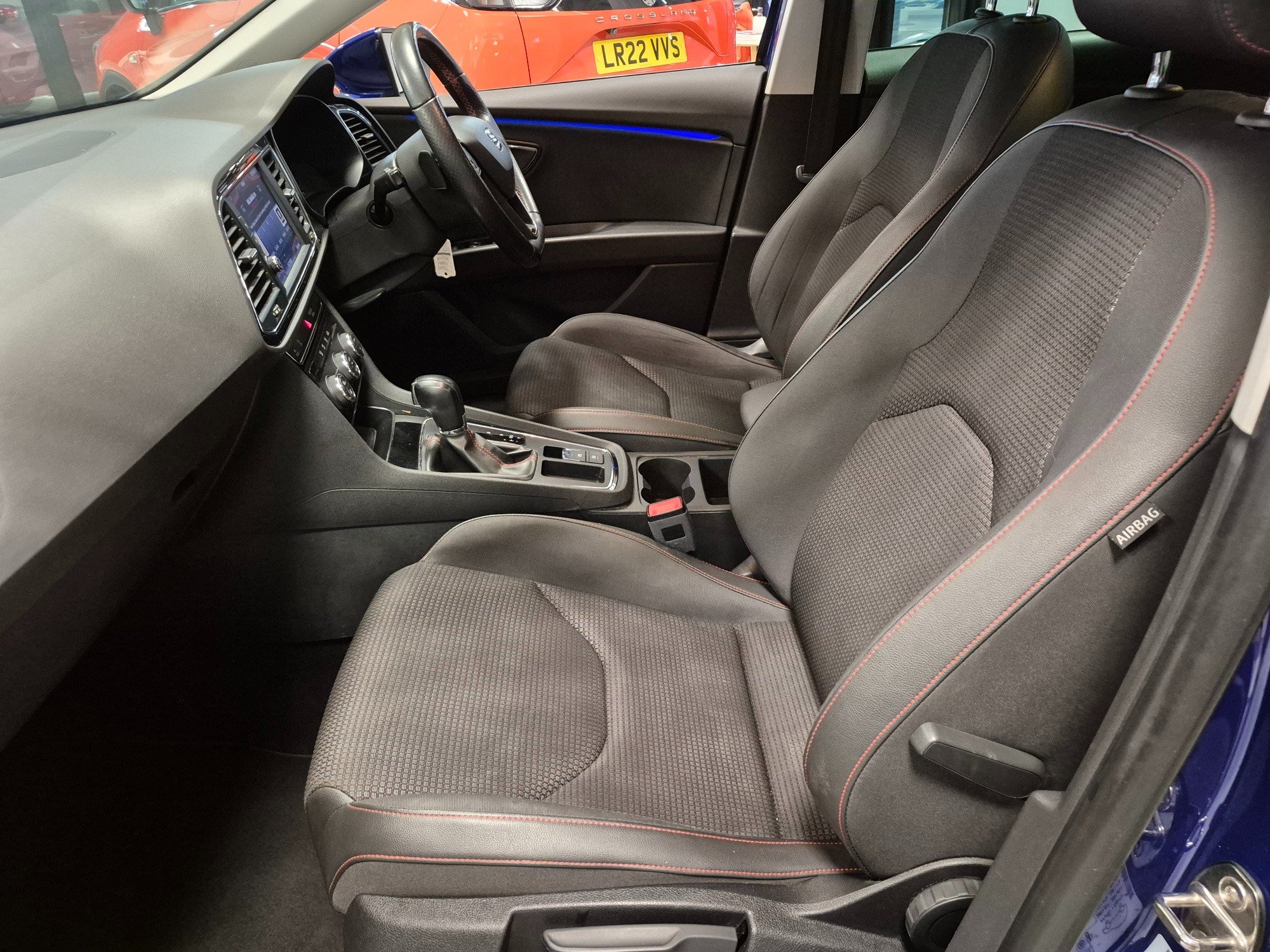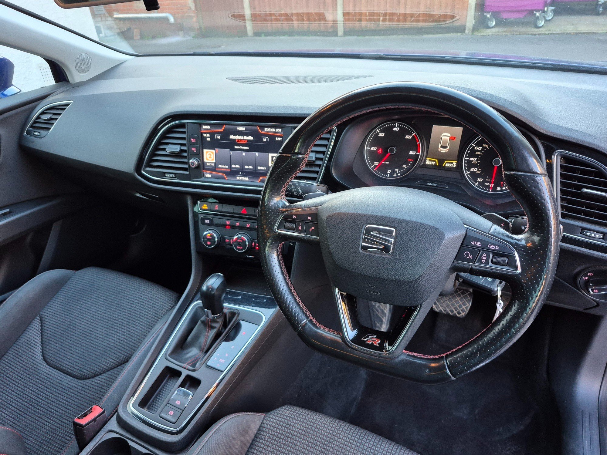 - Steering Wheel - Flat-Bottomed Perforated Leather with Red Stitching and FR Logo