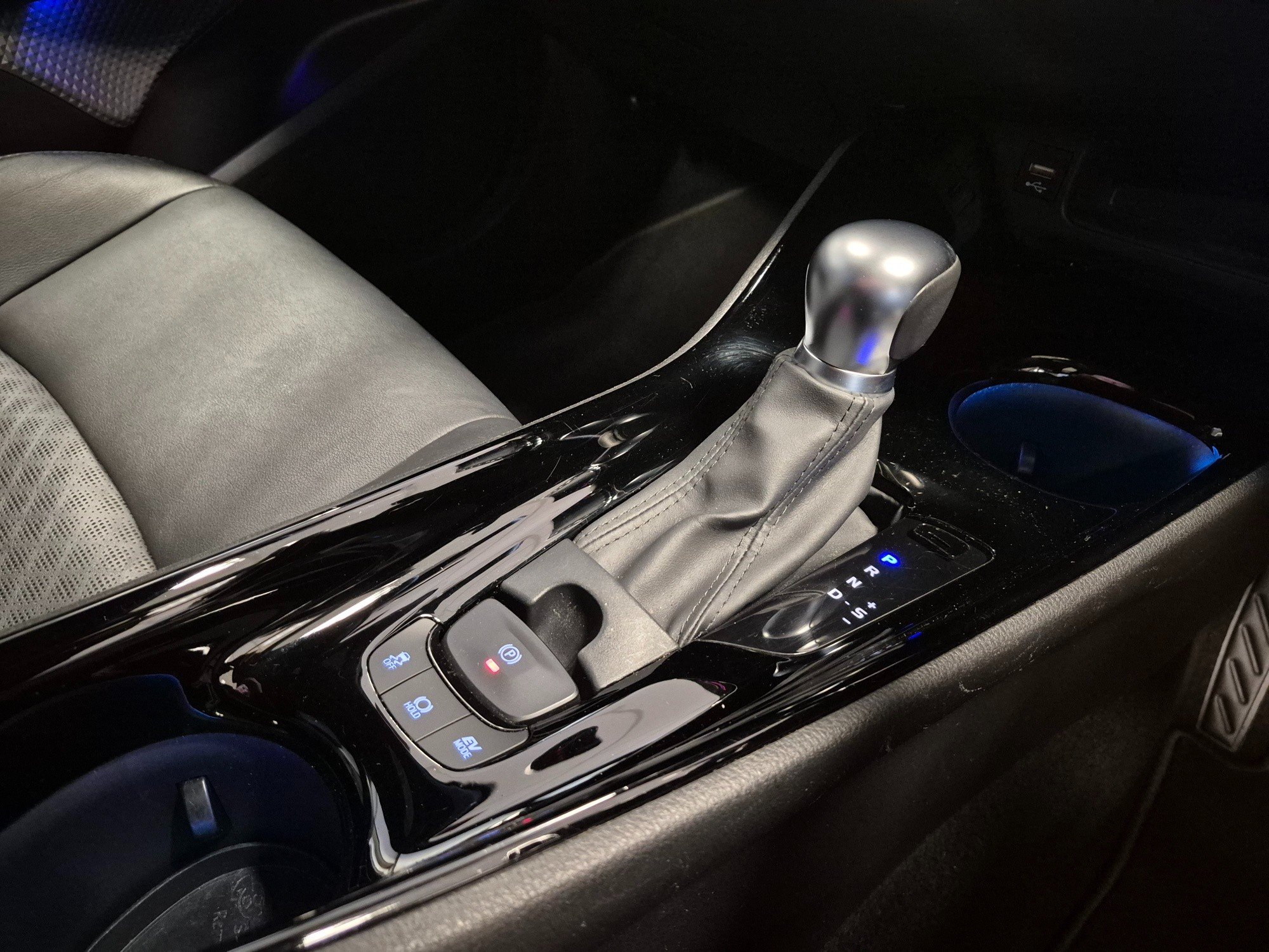 - Blue Ambient Lighting on Front Cup Holders